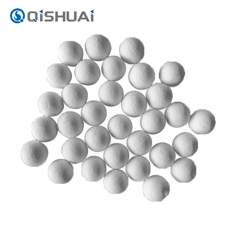 Les billes d'alumine de haute qualité produites par Shandong Qishuai ont toutes une dureté très élevée, une très bonne stabilité chimique et une résistance élevée à la chaleur (1600°C). Diverses spécifications sont disponibles avec une granulométrie allant de 0,5 mm à 10 mm. Les principales applications incluent le meulage et le polissage, le support de catalyseur, l'adsorbant, le matériau réfractaire à haute température, etc.