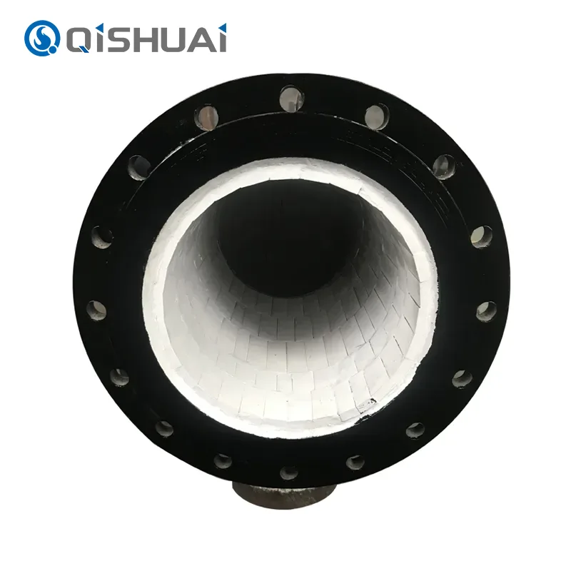 Shandong Qishuai Wear-Resistant Equipment Co., Ltd. produit des coudes doublés de céramique, qui combinent la dureté ultra-élevée, l'excellente résistance à l'usure et la bonne résistance à la corrosion des matériaux céramiques avec la résistance et la ténacité élevées des matériaux métalliques. Cette nouvelle conception de la structure composite permet à notre produit de fonctionner de manière stable dans différents types de conditions de travail complexes et difficiles. Il peut résoudre efficacement les problèmes de courte durée de vie et d'entretien fréquent des coudes largement utilisés dans les environnements à forte usure, à forte corrosion et à haute température, etc.