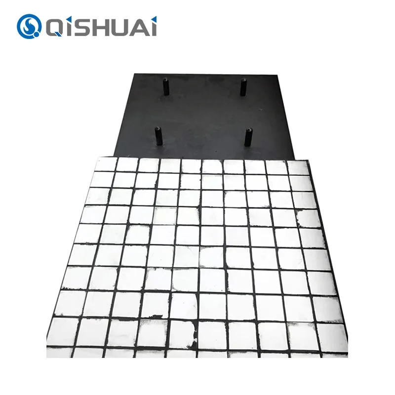 Grâce à la vulcanisation thermique, les plaques de céramique, de caoutchouc et d'acier sont étroitement liées pour former une structure intégrée robuste. Chaque carreau de céramique comporte des boulons traversants pénétrant dans la plaque d'acier inférieure et est solidement soudé, garantissant qu'aucun détachement de la céramique ne se produise pendant l'utilisation.